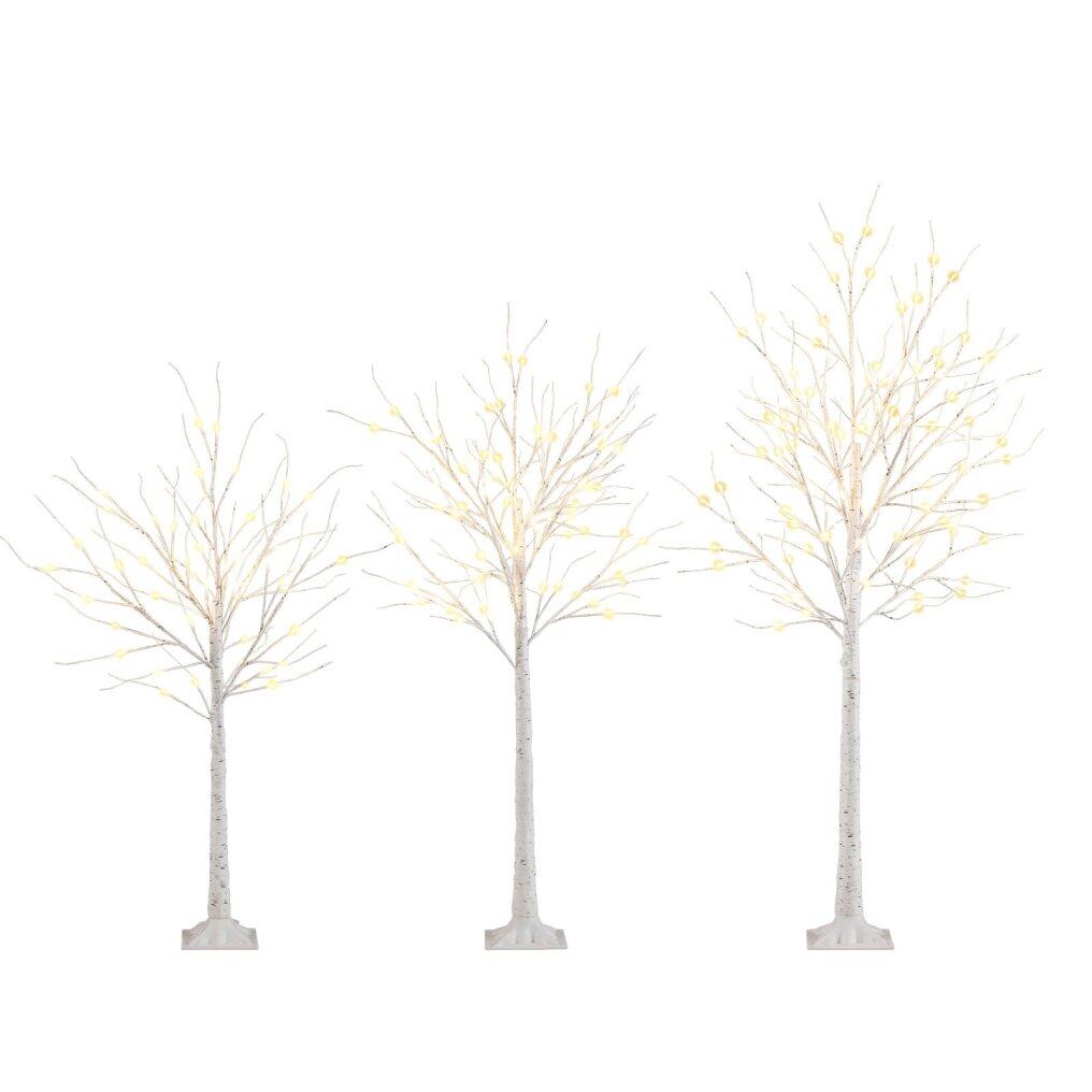 ● Enchanting LED Lights: The pre-lit birch trees feature 48+72+96 warm white LED lights, providing a soft and inviting glow both daytime and nighttime. Whether you want to cultivate a cozy indoor ambiance or light up garden paths and patios, these lights deliver enchanting illumination for any occasion