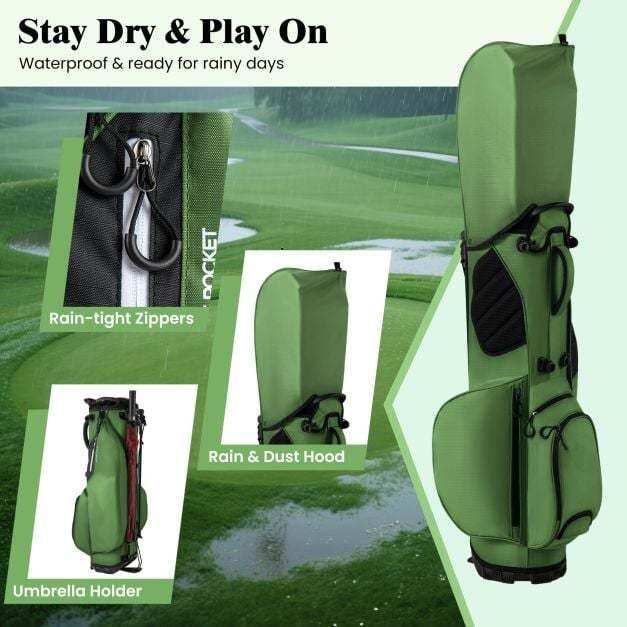 ● User-friendly Features: This lightweight golf bag includes a zippered rain hood and umbrella holder to protect your golf equipment from the elements. Moreover, the glove holder and towel ring ensure everything you need is at your fingertips.