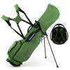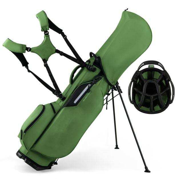 ● Stable Base & Stand: The press-in stand and pop-up base allow you to open the stand with a simple press. In addition, the sturdy support legs with anti-slip foot pads prevent the golf club carry bag from shaking or tipping.