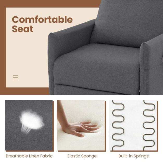 Soft and Comfortable Materials: To ensure your sitting and lying comfort, the overstuffed backrest is padded with soft PP cotton, while the seat is filled with elastic sponge. Besides, the whole recliner chair features breathable linen fabric cover for comfortable touch.