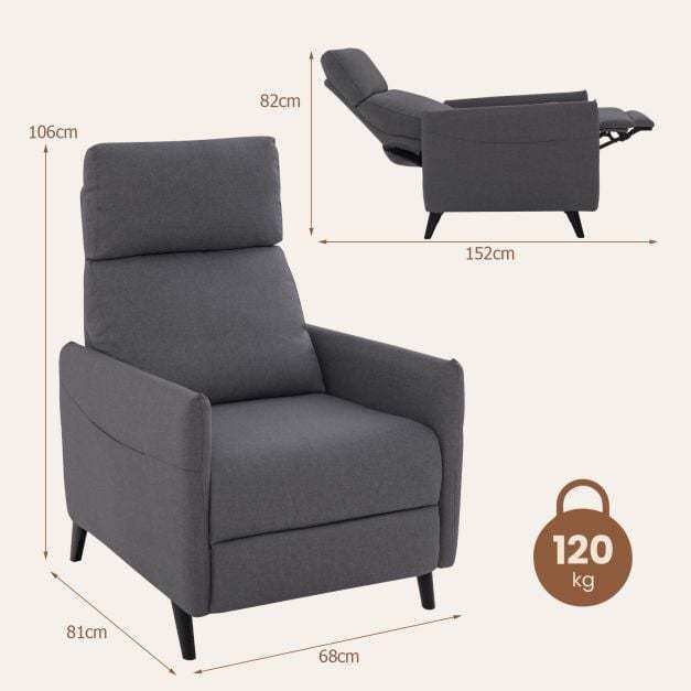 Super Easy to Assemble and Maintain: Intuitive instruction and necessary accessories are provided to help you finish assembly. Once assembled, the recliner sofa chair is 81 cm x 68 cm x 106 cm (L x W x H). Furthermore, the anti-wrinkle and fade-resistant linen fabric ensures convenient maintenance.