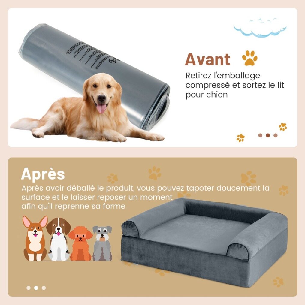 【Wide Range of Applications】The extra large dog bed measuring 102cm x 82cm x 30.5cm is suitable for most dog breeds. Thanks to its comfortable design, the foam pet bed is the perfect gift for dogs with joint pain. In addition, the elegant gray color allows it to blend harmoniously into your room decoration