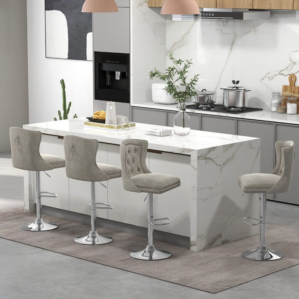 ● Charming Appearance: Each bar stool combines delicate rivets and adorable tufted buttons, and the result is an eye-catching centerpiece that easily blends with any decorations. Also, a pull ring is included to highlight an elegant design while working as a handle for easy movement.