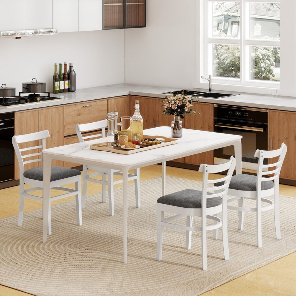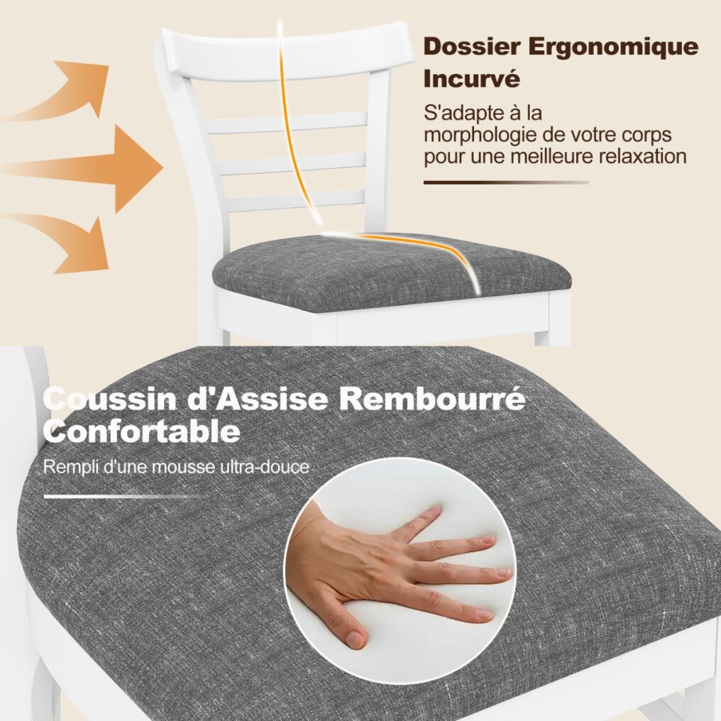 【Ergonomic Comfort】The kitchen chairs feature comfortable padded seat cushions and ergonomically curved backrests, designed to support your body's natural posture, providing comfort that lasts even through the longest dinners.