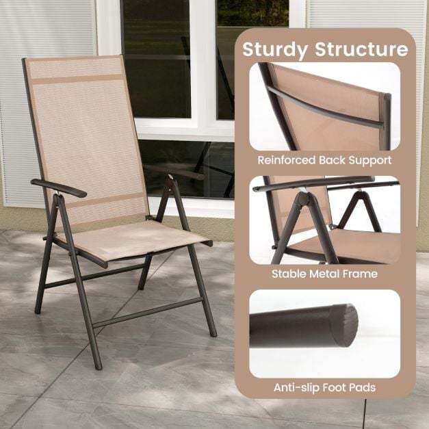No Assembly Required: This adjustable patio sling chair comes fully assembled and ready to use. Simply unfold it and enjoy comfort and convenience right out of the box. Unfolded dimensions: 75.5-107.5 x 52 x 108-82 cm (L x W x H).