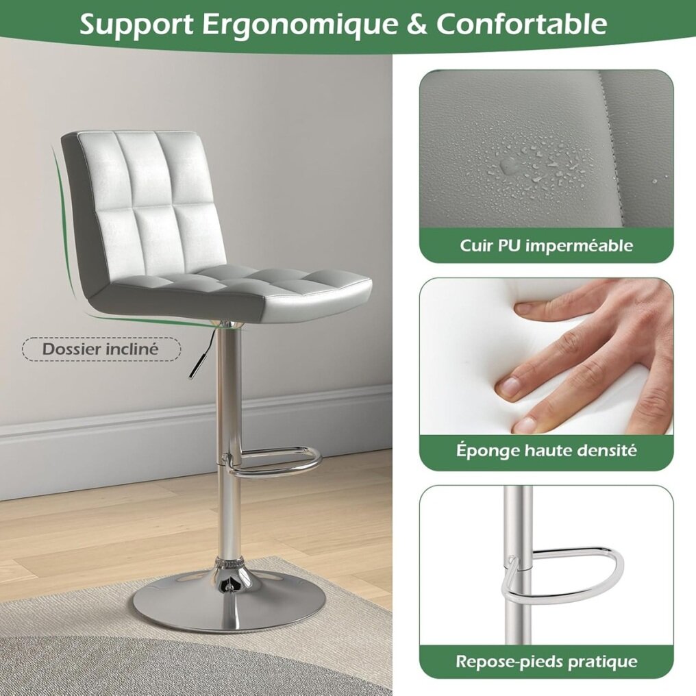 【COMFORTABLE SEATING】Filled with high-density sponge, the high stool provides a comfortable seating experience with optimal support. In addition, the faux leather is not only soft to the touch, but also waterproof for easy maintenance.