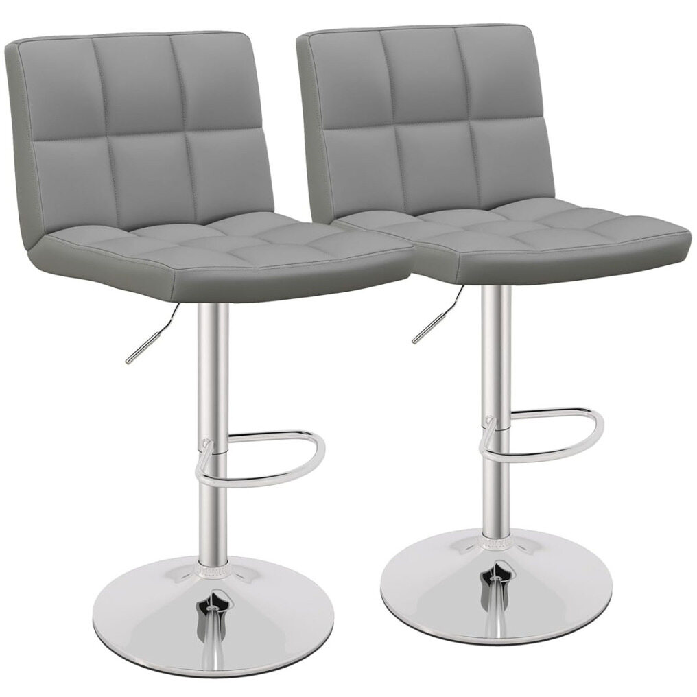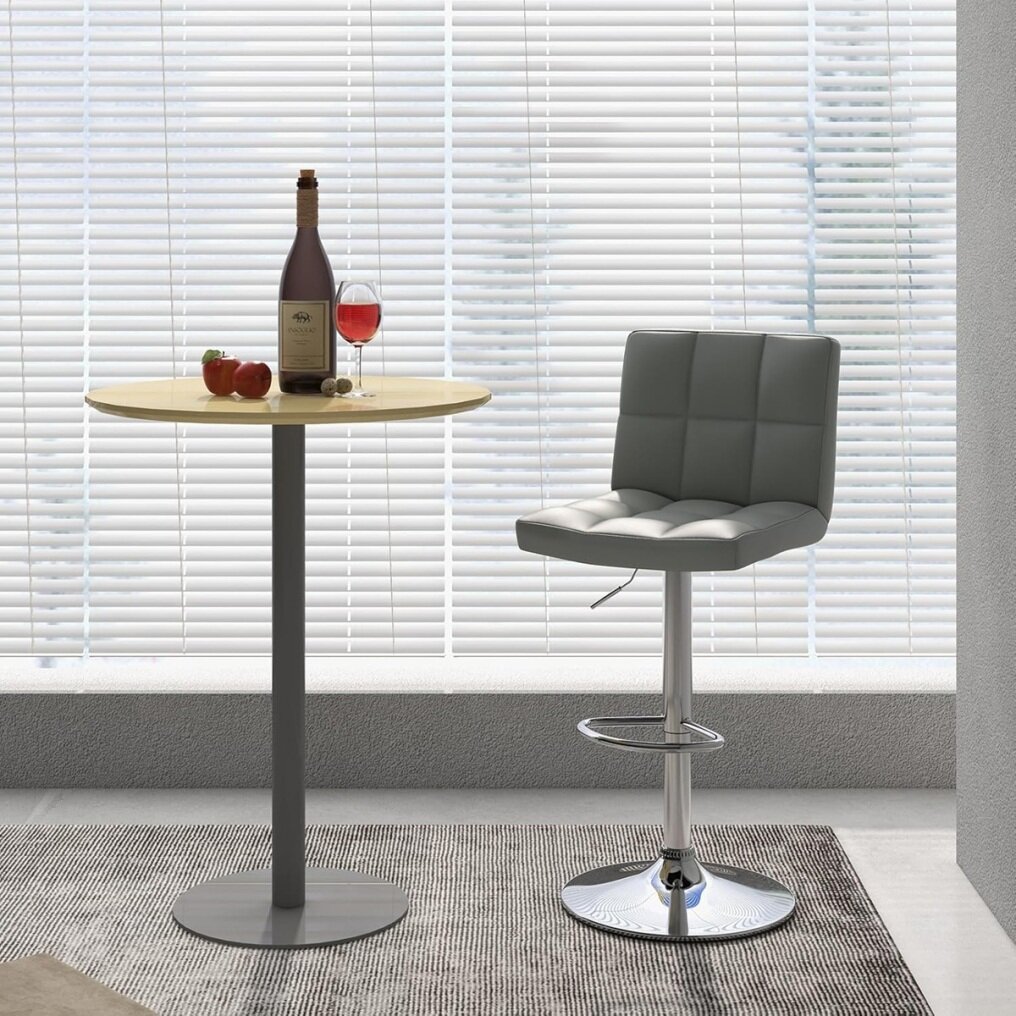【STURDY CONSTRUCTION】The swivel bar chair is designed with a quality gas lift and a large metal base, easily supporting up to 150 kg. In addition, the chrome-plated surface extends its lifespan and gives an elegant appearance.