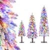Bring the joy of the holidays wherever you want with this realistic set of 3 Christmas trees. The set includes three trees of different sizes, perfect for creating a personalized display to suit any space. Each tree features numerous snow-covered branch tips that beautifully capture the atmosphere of a winter wonderland. The naturally drooping branches mimic heavy, snow-laden branches, adding an authentic touch to your décor. Energy-saving, multi-colored LED lights create a warm and festive ambiance. Made from high-quality, flame-retardant PVC, these trees are free of unpleasant odors. Furthermore, their stability is ensured by sturdy metal bases, and the included gloves make assembly easy and safe.