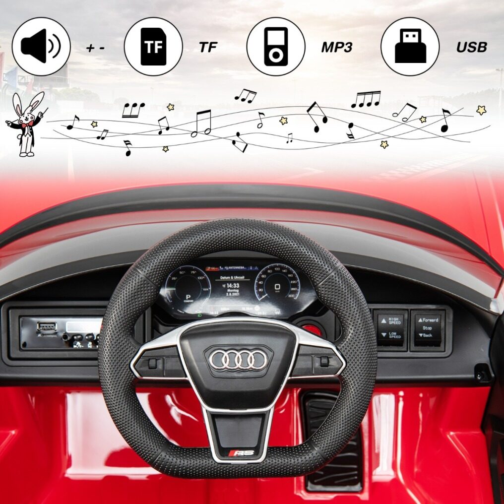Realistic Car with Multiple Functions : This licensed Audi RS GT car toy is equipped with LED headlights, steering wheel and forward/backward functions, imitating a real car to give kids a realistic driving experience. The versatile center console features a USB port, TF slot, MP3 interface, built-in music, horn and volume control buttons, bringing tons of fun to kids.