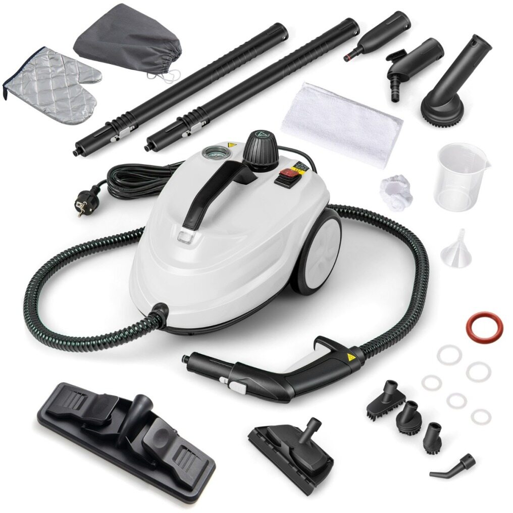 Transform your home into a sparkling haven with our ultra-efficient 2000W steam cleaner! Heats up in just 8 minutes and releases powerful 5 bar steam at 160°C that effortlessly cuts through grease and grime—without chemicals! Enjoy the freedom of extended cleaning with a colossal 1.8L tank giving you 30 uninterrupted minutes, covering large areas in one go. Comes with a 15-piece kit designed for every cleaning challenge: floors, windows, even fabrics! Easy navigation and handling with long cords and smooth-rolling wheels. Plus, the safety lock ensures peace of mind.