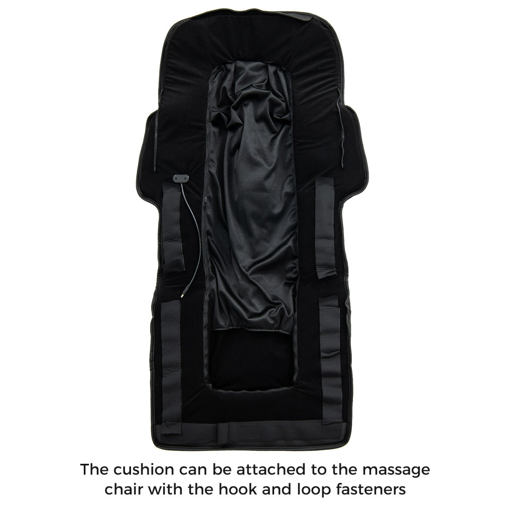 -Attach the backrest cushion to the massage chair with hook and loop fasteners and zippers