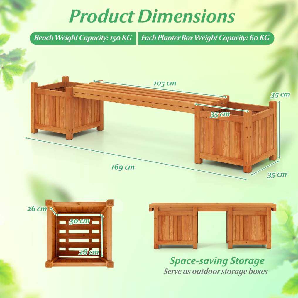 Stable and reliable construction: Made from high-quality solid wood, this planter and bench set offers a robust structure that withstands the elements. Finished with a waterproof teak oil treatment, it guarantees durability and resilience.