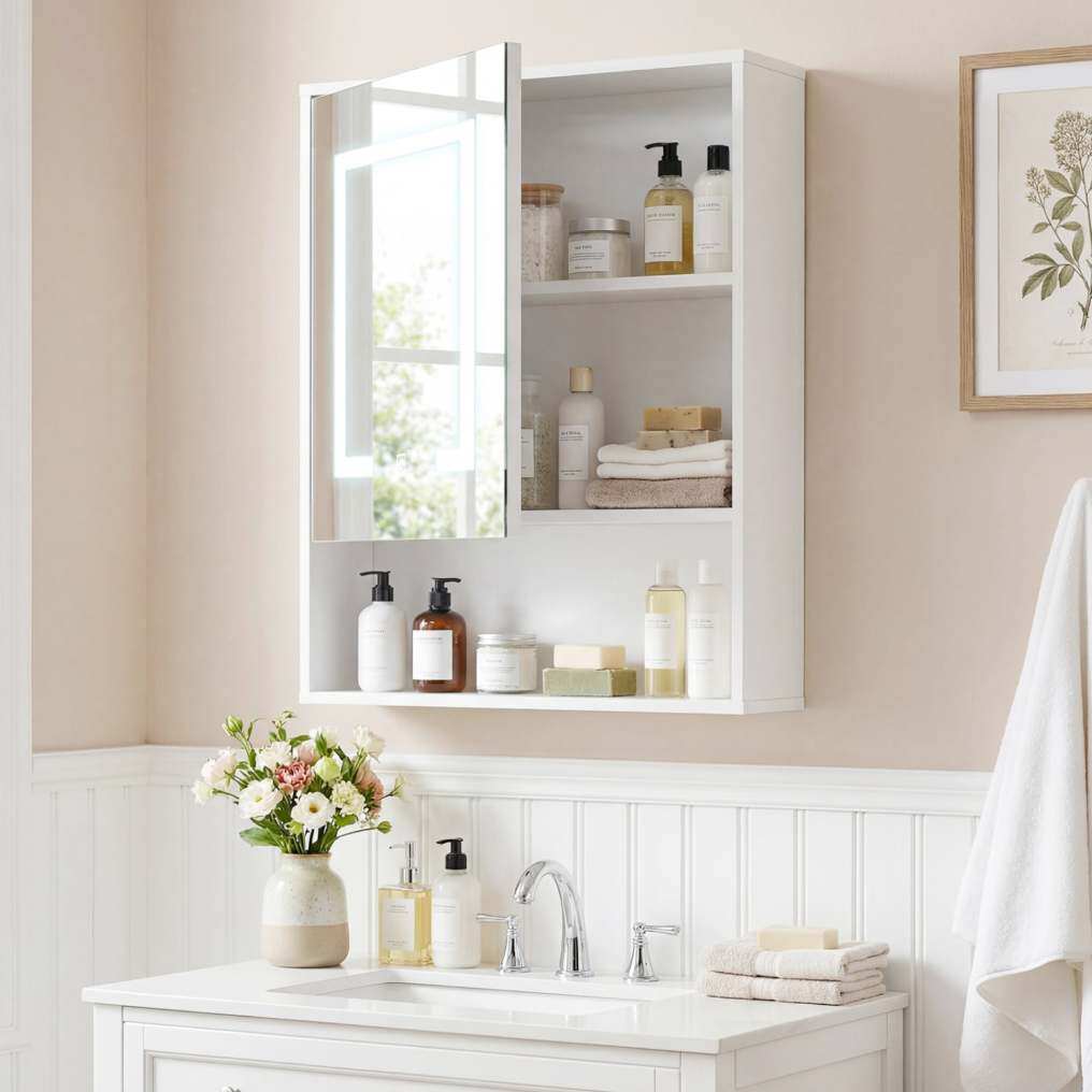 ● Premium Silver Mirror: This medicine cabinet offers high reflectivity and a distortion-free reflection for crystal-clear viewing every time. Ensuring reliable durability and reliable performance, this mirrored cabinet is an elegant yet functional addition to any bathroom or dressing area.