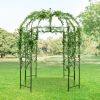 The birdcage-shaped garden arbor measures 211 x 211 x 256cm (L x W x H), providing large space for various climbing plants to grow, such as ivy, clematis, wisteria, grape vine, morning glory, etc. And the birdcage shape makes them grow naturally up toward the top. Moreover, there exists a hook on the top for hanging flower baskets, wind chimes, lanterns, or other small items. You can also put a table and chair set under the arbor, allowing you to enjoy outdoor leisure time with your family or friends. Other than that, the arch trellis is constructed of heavy-duty metal with anti-rust coatings, ensuring good sturdiness and durability. And we also provide 16 metal ground stakes for fixing the arch arbor on the ground for adding more stability. Furthermore, you can also decorate it with flowers and tulle used for weddings, balloons used for birthday parties, or bright LED lights used for patio decor.