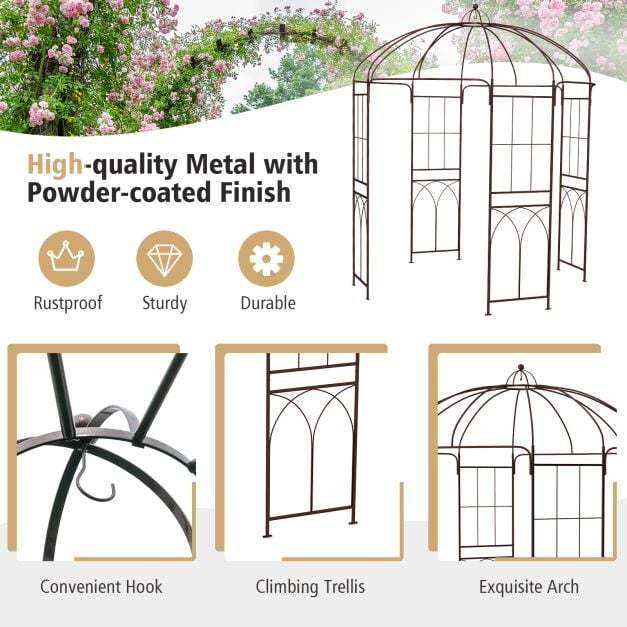 Sturdy and Durable Construction: The birdcage-shaped garden arbor is constructed of heavy-duty powder-coated metal, which is characterized by high strength, weather resistance, and rust resistance, ensuring long-lasting durability. And it can withstand harsh weather conditions for long-term outdoor use.