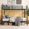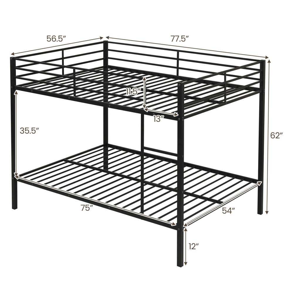 ● Generous Under-Bed Storage: Maximize your storage options with this smart metal bunk bed, offering a generous 12” clearance for suitcases, bins, or anything you want out of sight. Cleaning underneath is a total breeze, keeping your space tidy without lifting a finger.