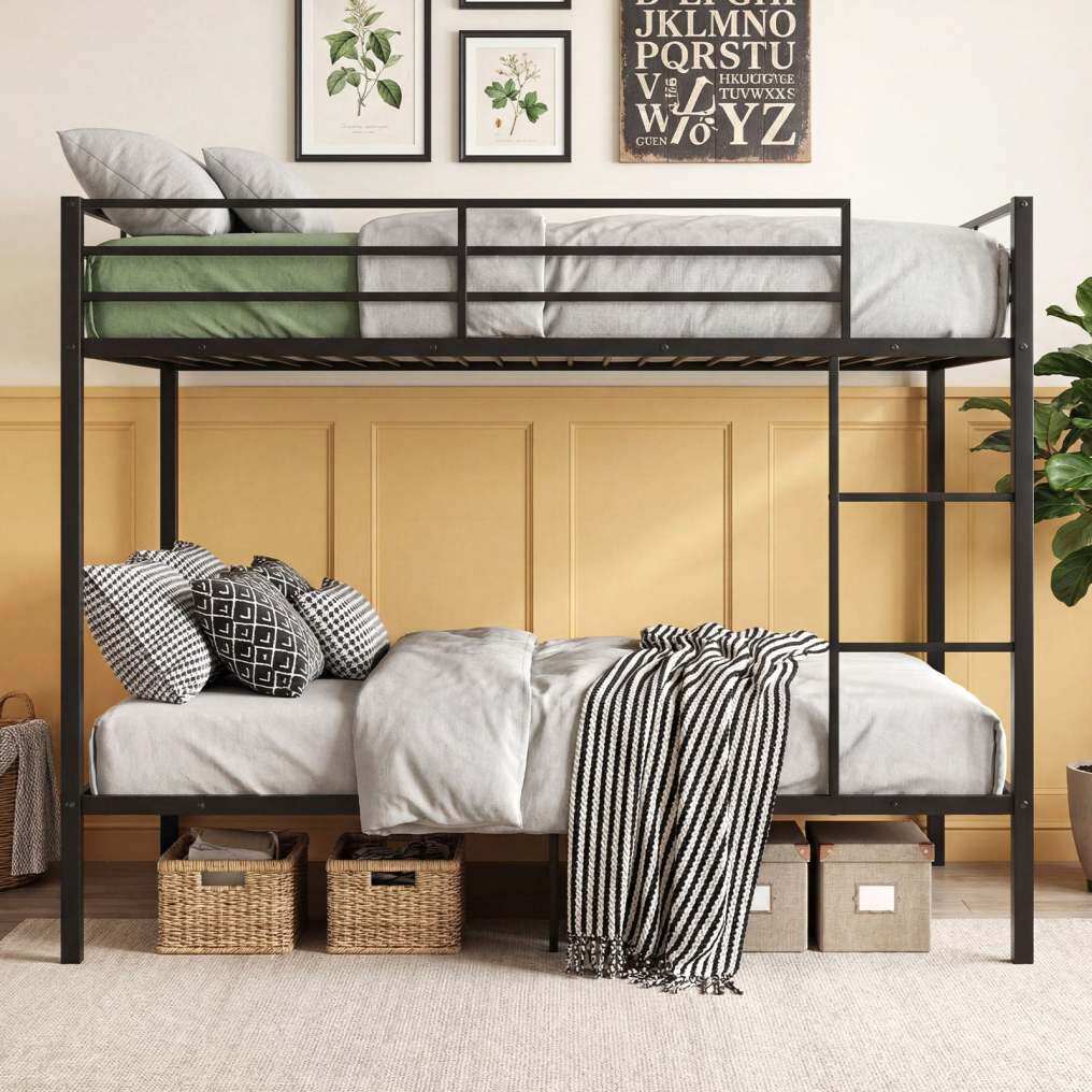 ● Sturdy Heavy-Duty Construction: Experience unmatched durability with this bunk bed, crafted from thickened square posts and over 40 robust metal slats. It’s tough enough to handle up to 600 lbs in total without a hint of wobble. Reinforced with center bars, you can count on steadfast support and lasting strength for years to come.