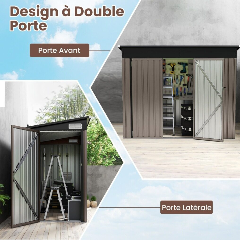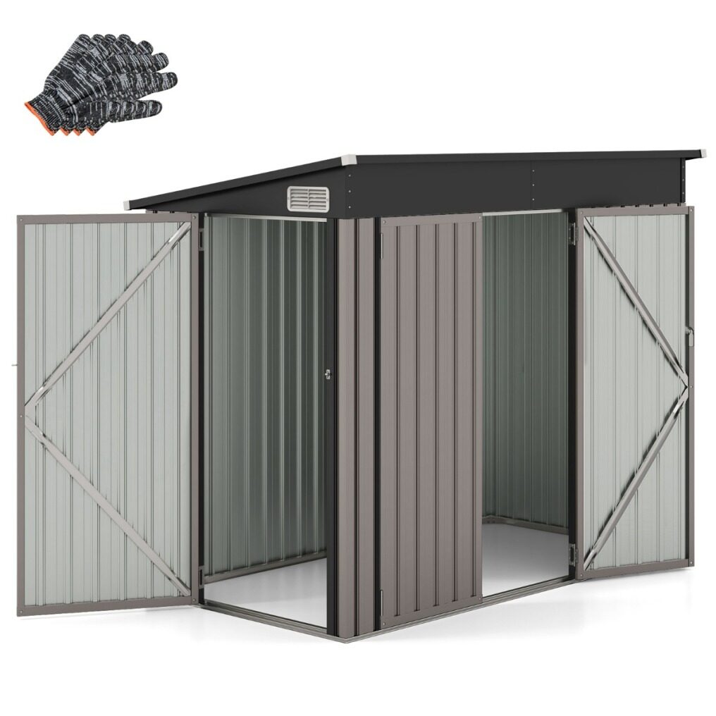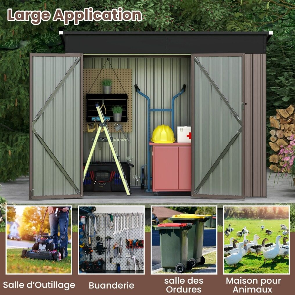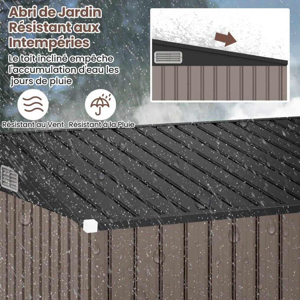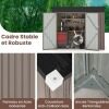 Our all-season storage shed with a sloped top design ensures rapid rainwater runoff. Windproof and waterproof, it features a large front door with a metal latch and catches for security, as well as a side door for added versatility. It will meet various storage needs in your yard or garden. The structure is reinforced with galvanized metal panels and an anti-collision cover. With reinforced triangular anchors ensuring stability, it offers unparalleled durability.
