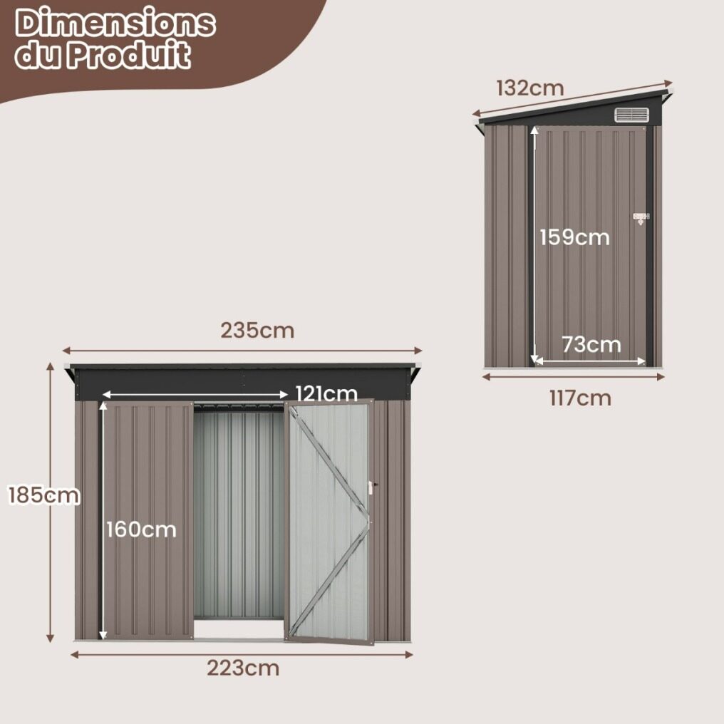 【Details and Dimensions】With security locks and keys, a convenient handle and windows, this shed is carefully designed for user convenience. The overall dimensions are: 235 x 117 x 185 cm (L x W x H).
