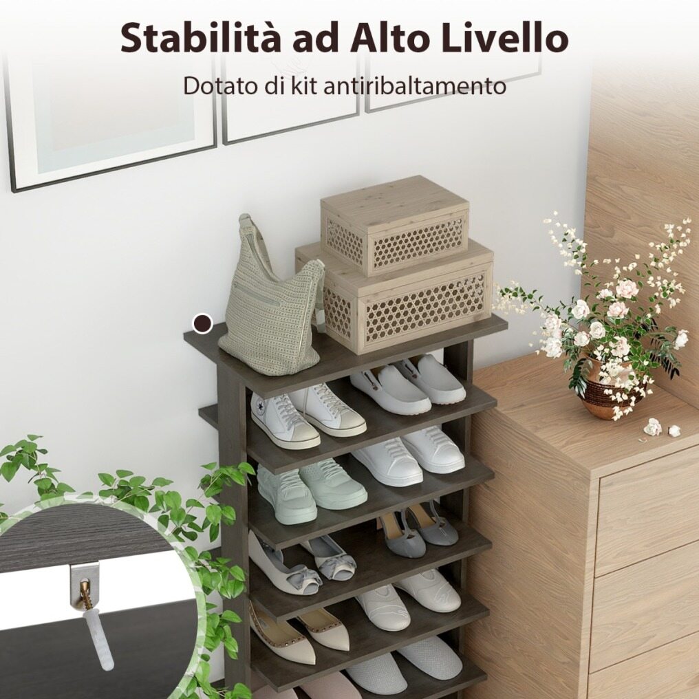 Sturdy and Durable Material : Made of thicker panels and designed with an anti-tip device, this narrow shoe rack is sturdy and stable to use. Additionally, the reinforced edge sealing prevents curling or cracking, while the premium surface ensures excellent water and scratch resistance for a long-lasting shoe rack.