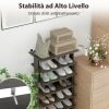 Shelves with Different Heights : The 5 upper shelves of the entryway shoe rack are 12.5 cm high, ideal for holding low shoes such as sneakers, slippers, ballet flats, etc. While the other lower shelves are 19 cm high and are suitable for higher shoes, such as boots, heels, etc. If necessary, you can also remove some shelves to customize the space.