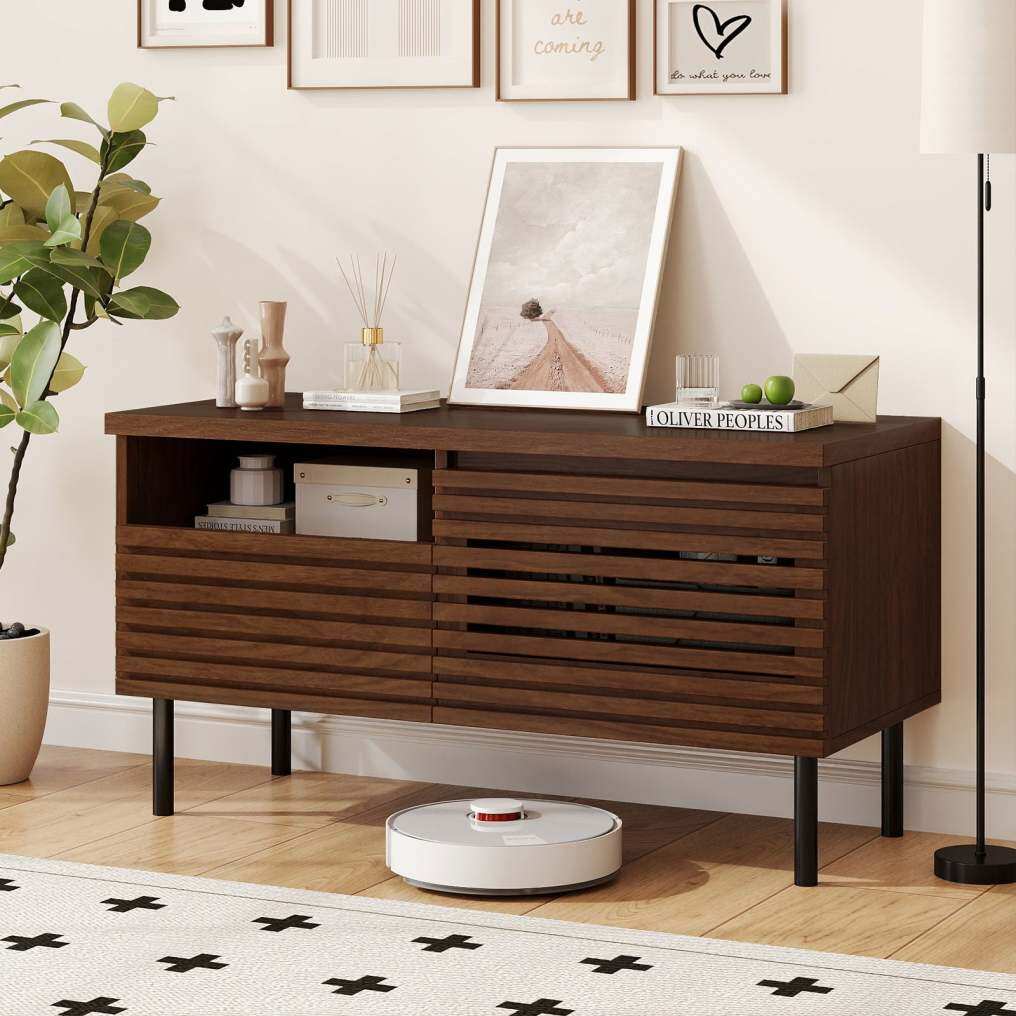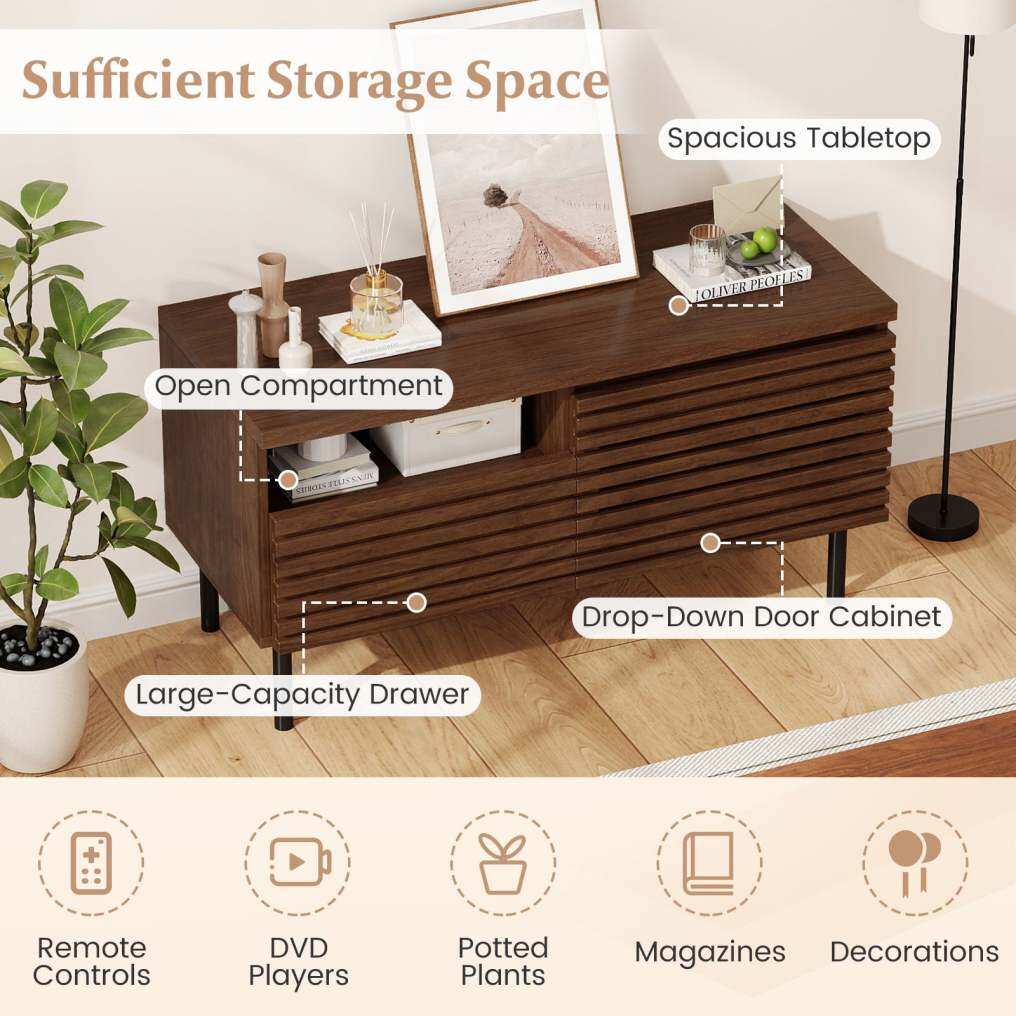 ● Retro Fluted Appearance: With the charming fluted look, this TV console effortlessly combines mid-century aesthetics with contemporary needs, infusing your home with a touch of elegance, making it a standout piece in the living room or bedroom.