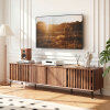 ● Elegant & Practical Design: The combination of rich walnut wood grain finish and slatted doors adds charm and sophistication to any room. It works equally well as a TV stand or a display cabinet to suit your different needs.