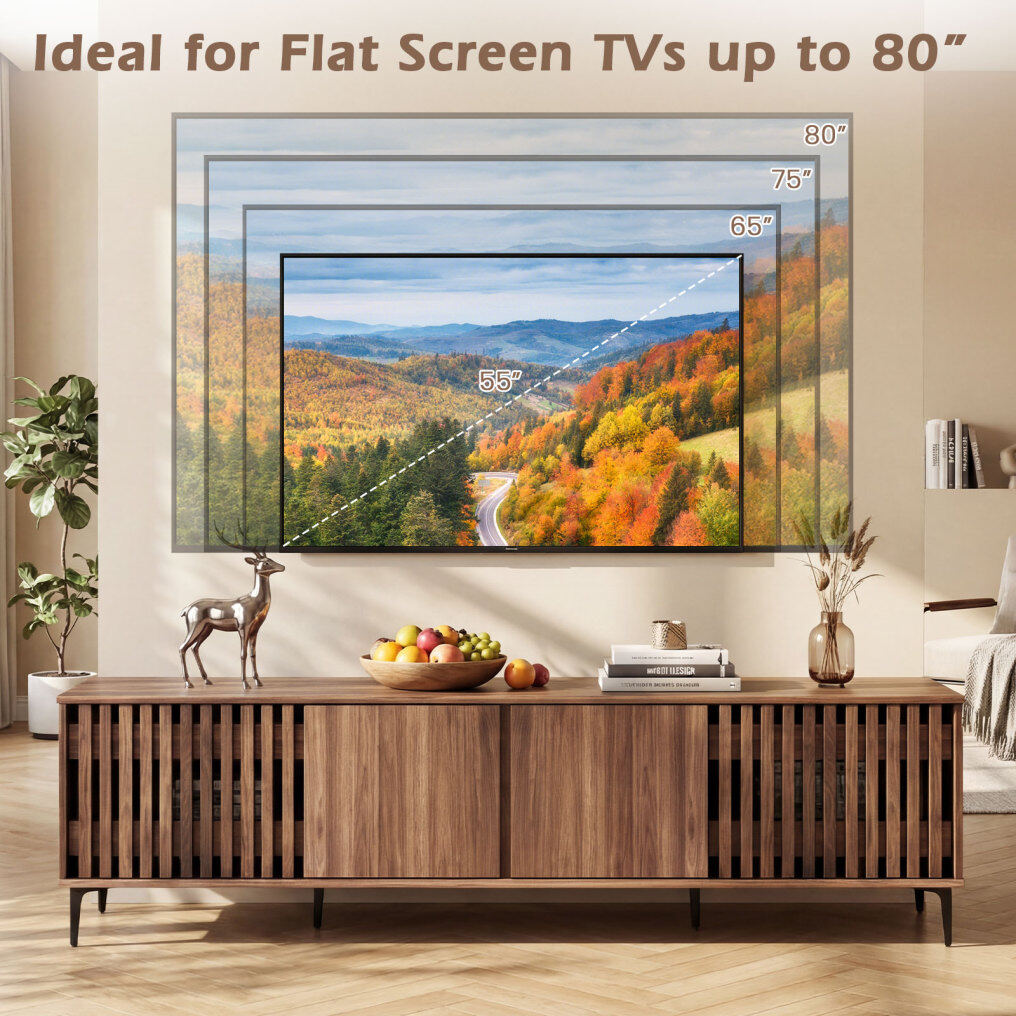 ● Suitable for 80-Inch TVs: Measuring 71" x 16" (L x W), this TV cabinet provides a spacious surface that accommodate flat screen TVs up to 80 inches. The wide tabletop also provides plenty of room to showcase decorative pieces.
