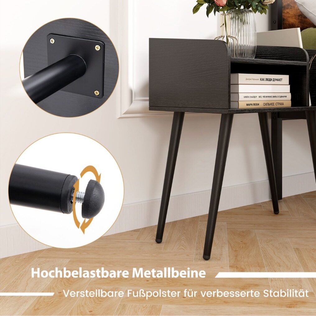 • Ample Open Storage: Discover the perfect storage solution with the modern nightstand, boasting 2-tier storage and a side shelf for versatile organization of your essentials.
