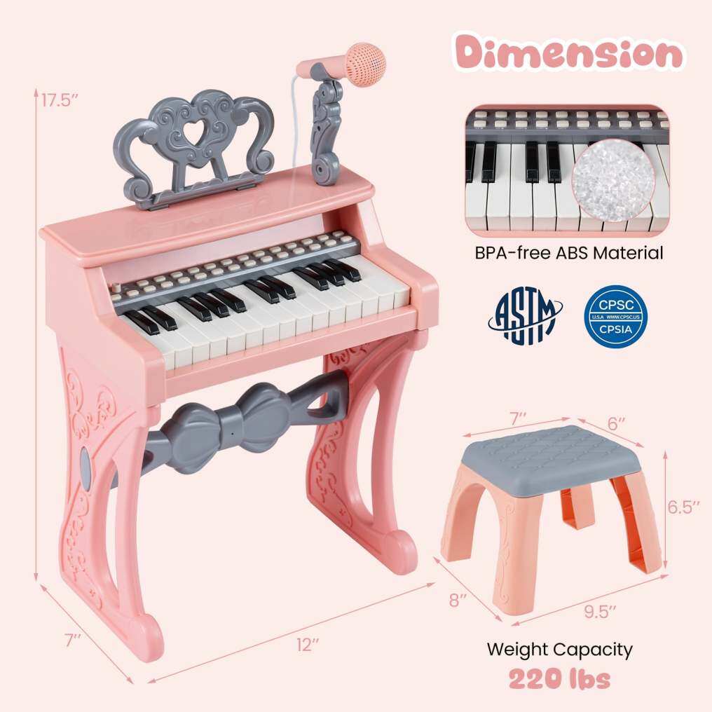 Perfect Gift for Kids: The BPA-free ABS material ensures durability and peace of mind. This 25-key keyboard piano with stool makes an ideal gift to promote hand-eye coordination and memory training, boost focus and concentration, and launch your child’s journey into the world of music enlightenment.