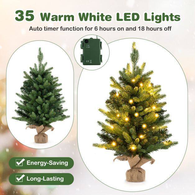 【Pre-lit Design with Timer Function】The pre-lit Christmas tree is adorned with 35 warm white LEDs, providing a warm and welcoming glow. And it has a built-in timer function with 6 hours on and 18 hours off, ensuring effortless and energy-efficient operation.