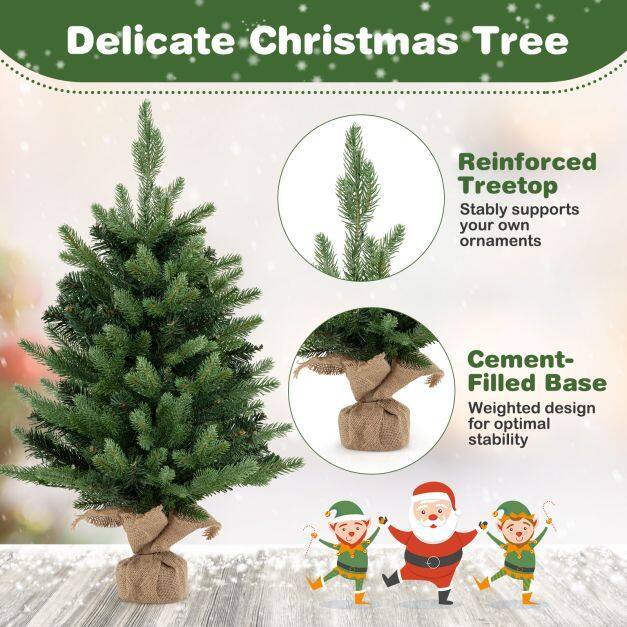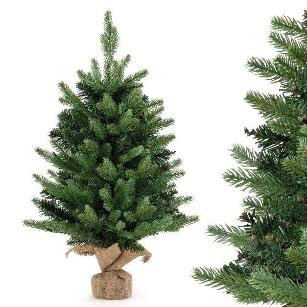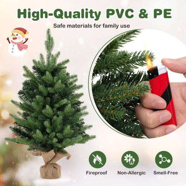 【Vivid and Natural Appearance】This 23.6 inch mini artificial Christmas tree comes with 234 lush branches, providing a full and vivid appearance. And it features a mix of 2 types of leaves, including soft PE leaves and lush PVC leaves, adding depth and authenticity to the tree.