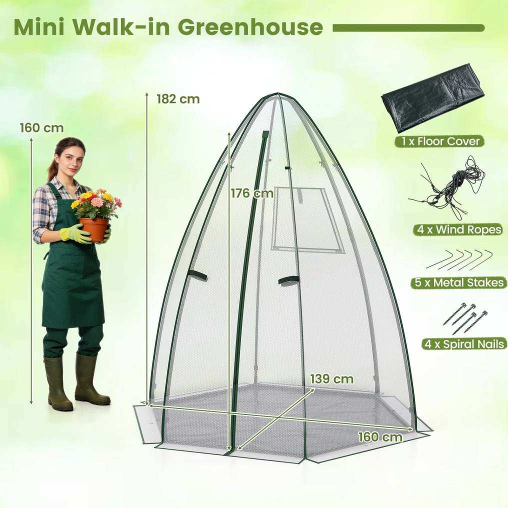 Easy access and good ventilation: The double-layered mesh window of this small greenhouse allows for effortless control of air circulation and temperature, ensuring ideal growing conditions. A large zippered door allows for convenient entry.