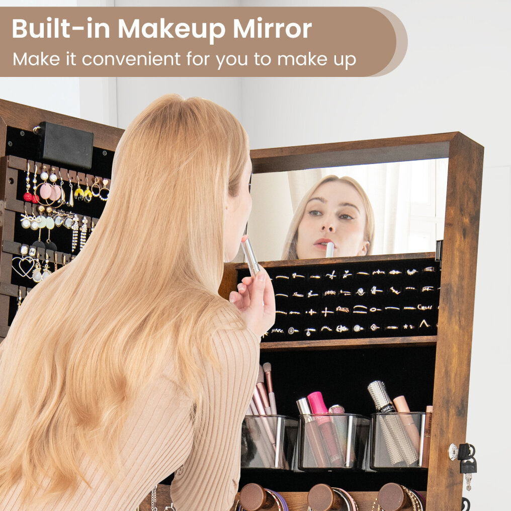 ● 4 Tilt Angles for Adjustment: 4 tilting positions offer different viewing angles, making it suitable for people of different heights. The mirrored jewelry armoire can be adjusted to the optimal angle, helping you better try on clothes.