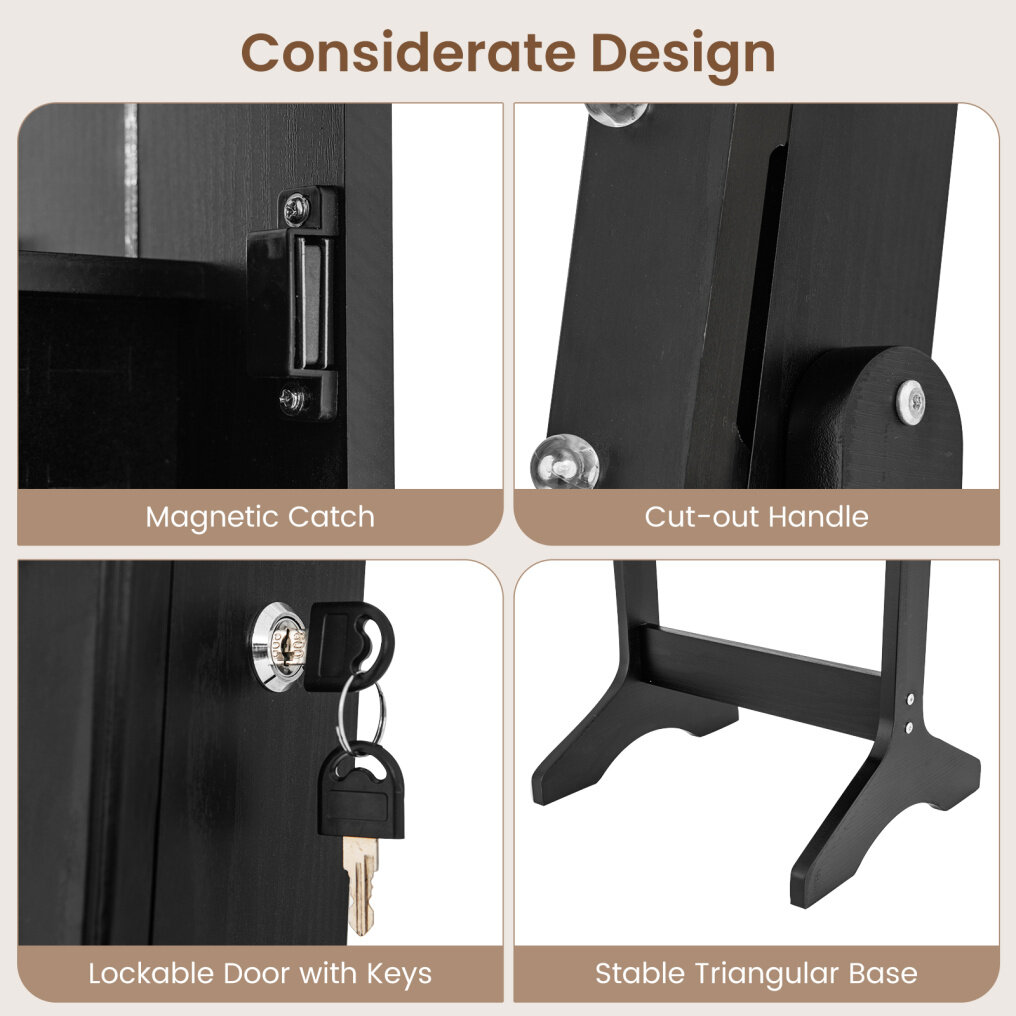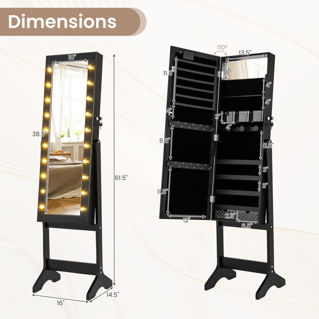 Mirror Jewelry Cabinet with 20 Warm Lights and 4 Tilt Angles-Black
