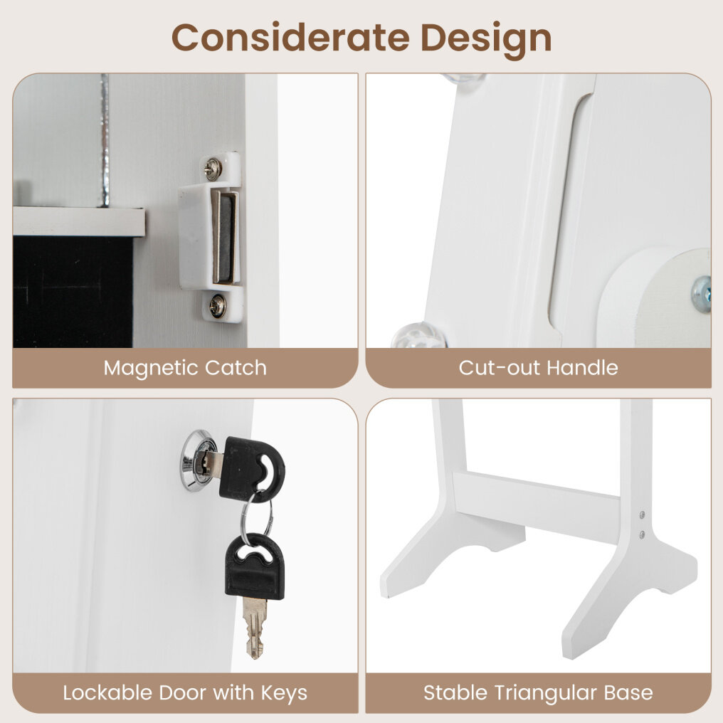 ● 4 Tilt Angles for Adjustment: 4 tilting positions offer different viewing angles, making it suitable for people of different heights. The mirrored jewelry armoire can be adjusted to the optimal angle, helping you better try on clothes.