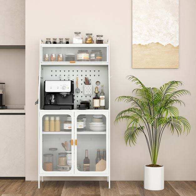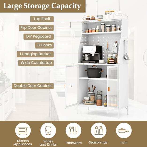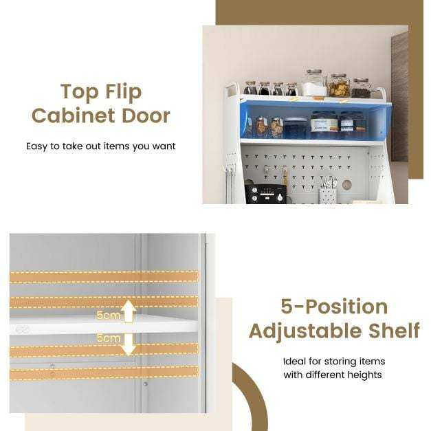 Reliable Metal Frame: The pantry cabinet features an integrated metal frame that is very sturdy. The wear-resistant surface has great strength and ensures long-time use. With overall weight capacity of 60kg, the cabinet is a reliable choice for storing your personal belongings.