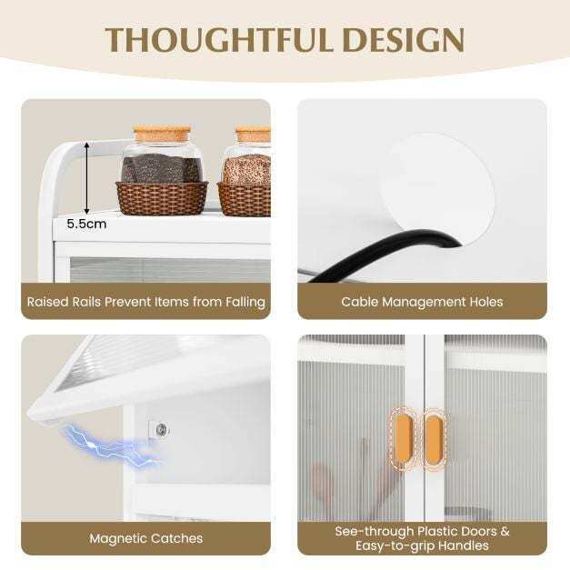 Multi-functional Storage Cabinet: The versatile cabinet is perfect for use in the bathroom, living room or kitchen. Modern design blends well with any decoration, and translucent doors add a touch of elegance. It enhances the aesthetics of your space while keeping it neat and organized.