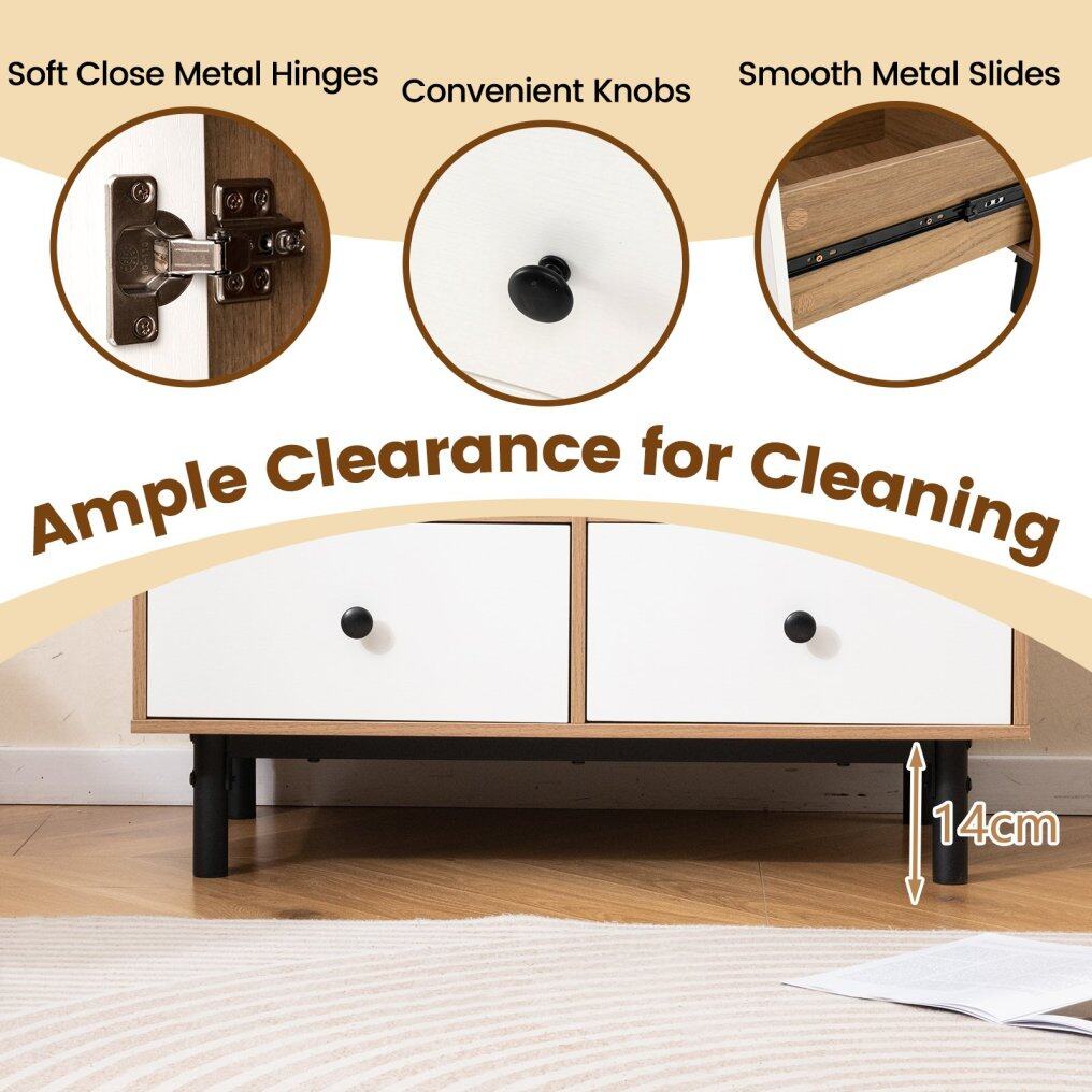 Not only does this stylish organizer boast ample storage with a cabinet, compartment, and 4 drawers, but its sturdy build can hold up to 120kg! Forget about unstable furniture; the buffet sideboard includes 2 anti-tipping safety kits for maximum protection. Designed for silent operation, enjoy soft-close door and drawers that glide smoothly without a fuss. Its sleek mid-century design adds a timeless charm that elevates any space. Perfect for any room, our elegant accent cabinet turns your storage woes into a design statement. Get ready to redefine your space!