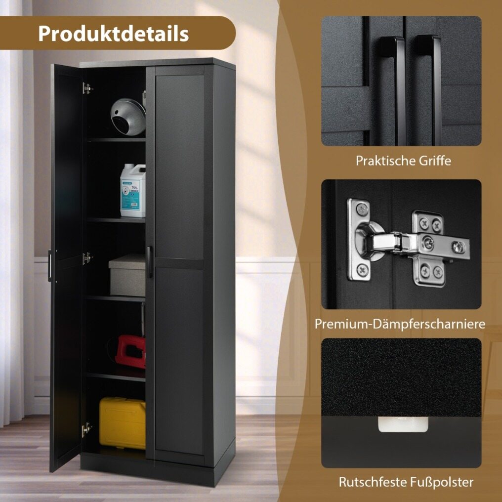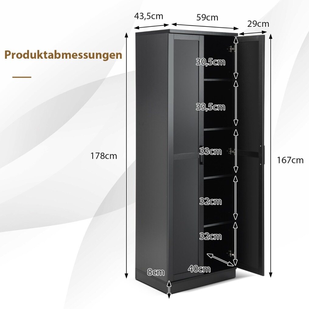 Dimensions & cleaning : The storage cabinet measures 59 x 43.5 x 178 cm and is suitable for small spaces. The floor is raised by 8 cm to protect the interior from dust. In addition, the surface is smooth and waterproof, so you can easily clean the cabinet with a cloth.