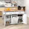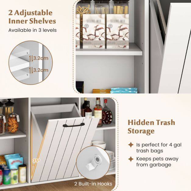 Clever Waste Disposal: Integrated with hidden trash storage, the middle cabinet is perfect for 4 gal trash bags, blending functionality with neatness in your kitchen environment. Furthermore, the 2 built-in hooks securely hang the refuse bags.