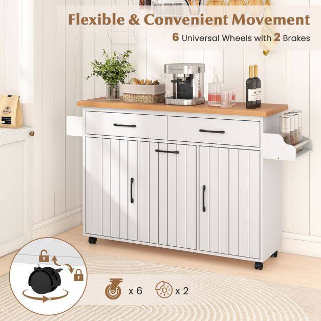Mobile Convenience: The island cart is outfitted with 6 universal wheels, and it can effortlessly move around to simplify your kitchen layout. Additionally, 2 wheels are lockable for stability, giving you peace of mind.