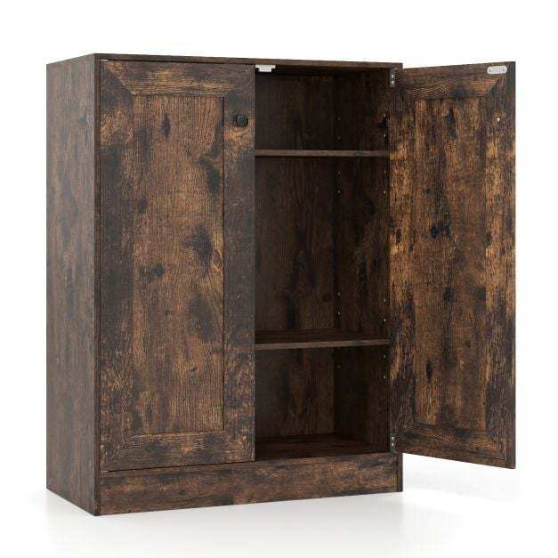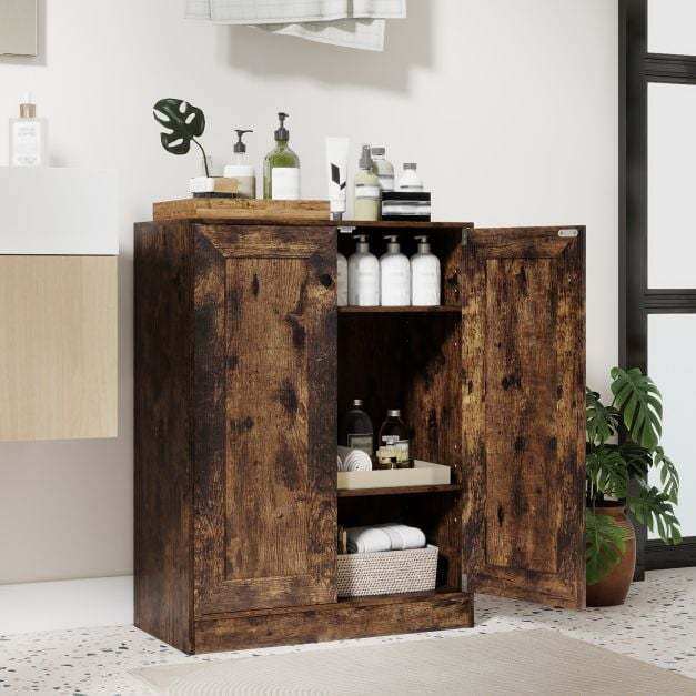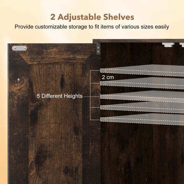 Bring effortless organization and style to your space with this floor-standing storage cabinet. The wood-look surface, combined with a white or rustic brown finish, creates a modern or industrial aesthetic that complements many interior design styles. Featuring two adjustable shelves, each with five height options, this bathroom cabinet offers customizable storage space and a convenient surface for frequently used items.