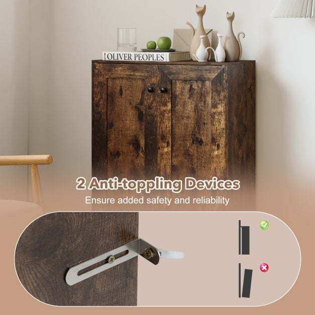 Enhanced safety features: The wooden storage cabinet is equipped with two anti-tip devices that ensure secure wall mounting, thus providing increased safety. Furthermore, the smooth surface provides a safe and pleasant feel.