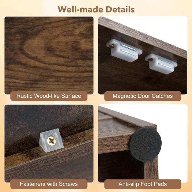 Durable and stable design: Made from robust wood, this small storage cabinet offers reliable support for your belongings. Non-slip rubber feet and screw connections guarantee additional stability.