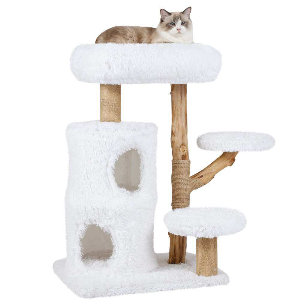 Modern Cat Tree for Indoor Cats 30.5 Cat Tower with Real Solid Wood Branches-White