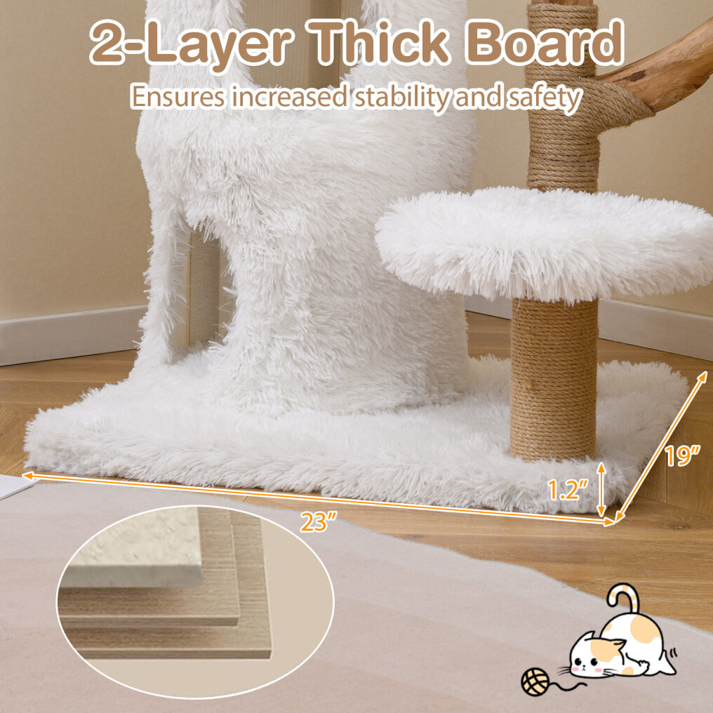 • Stable Wood Construction: The sturdy posts of the cat tree are made from high-strength pear wood, providing exceptional resistance to splitting and sturdiness. Its 23” x 19” base is 1.2” thick, delivering outstanding stability and balance for the multi-level cat tower.