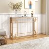 ● Geometric Golden Frame: Immerse yourself in modern luxury with the eye-catching geometric frame of this console table. The radiant gold finish exudes opulence, creating a dazzling centerpiece that makes a powerful style statement in any space.