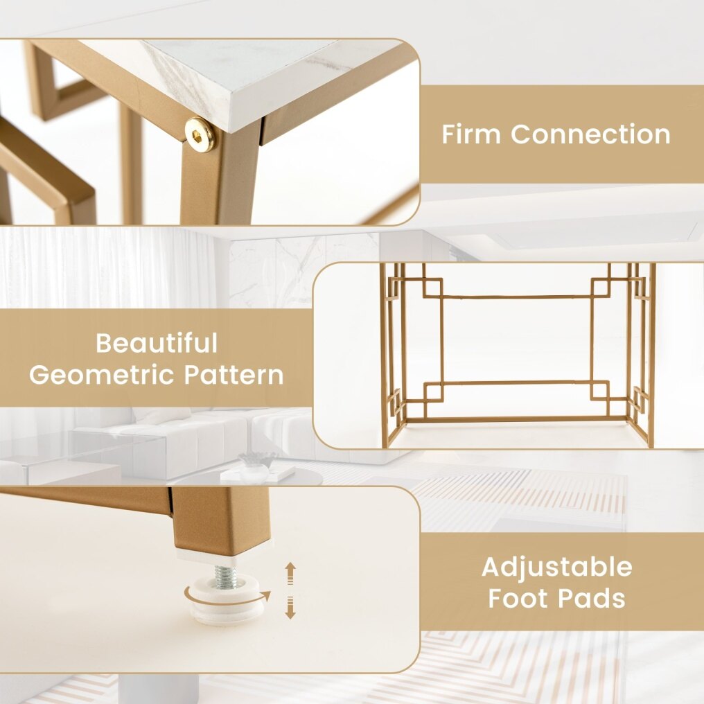 ● Captivating White Faux Marble Tabletop: Elevate your space with the exquisite white faux marble tabletop of this modern console table. Its stunning design instantly adds a touch of glamour and sophistication to any room, turning heads and sparking conversations.