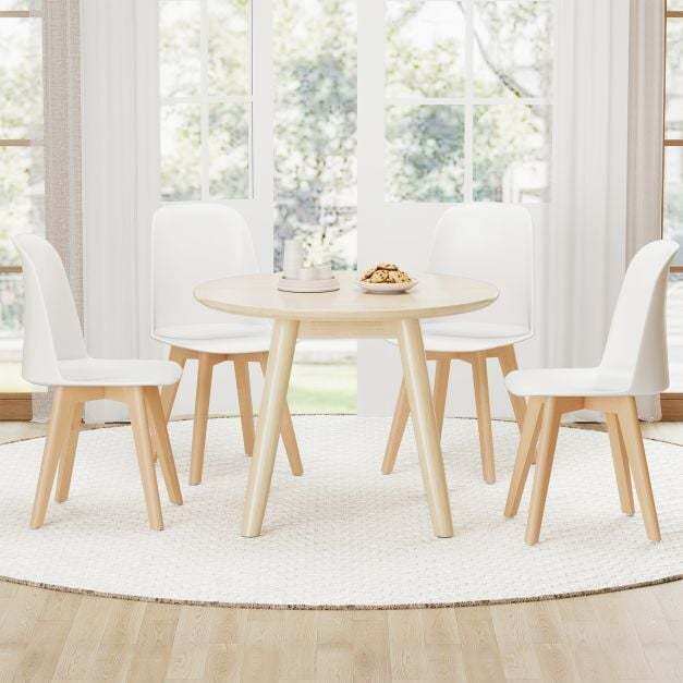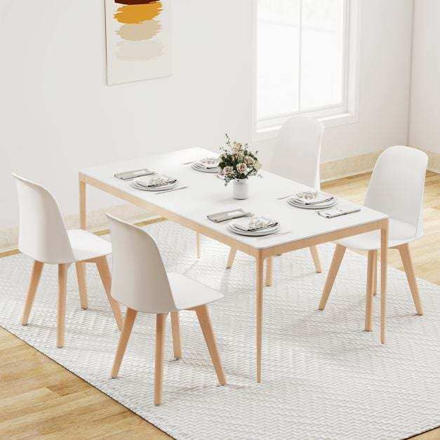 ● Sturdy and Stable Frame: These kitchen chairs combine sturdy wooden legs with a robust PP seat and backrest, which can load up to 330 lbs. Plus, the stable X-shaped structure and non-slip foot pads add extra stability to the entire frame.